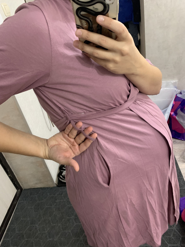 Ткань тонкая, просвечивается. Товар пришел в пакете от предыдущего покупателя-отказника. Все мятое. Как скомкали так и бросили. Пакет весь пыльный. Продаете для беременных, а все какое-то пыльное и грязное. Заводской упаковки не было.